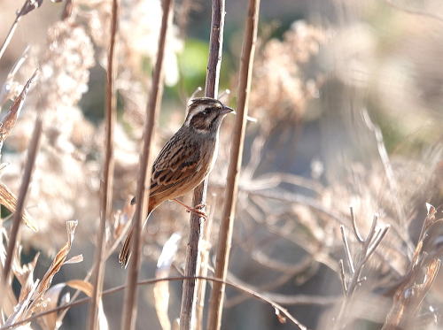 | ノスリ[1月22日] 茂みに急降下して見失いました。 | アオジ[1月22日] 通路を人が通るたびに隠れます。 | |
