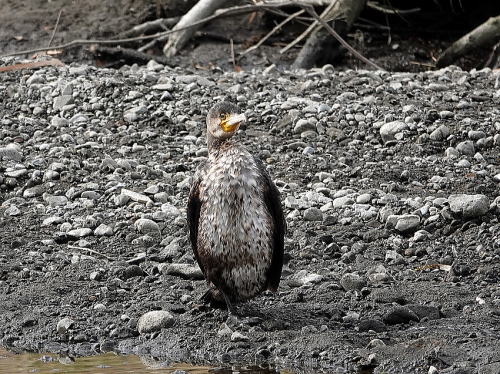 | オオバン[1月27日] 工事で水草はダメ、丘の上でお食事です。 | カワウ[1月27日] 若鳥です、寝ぼけ眼です。 | |