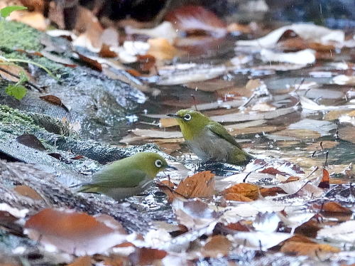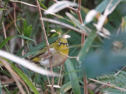 | メジロ[1月2日] 水浴びにやって来ました。 | ホオジロ[1月1日] 枯れヨシの中に群れでいます。 | |