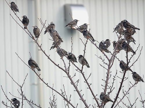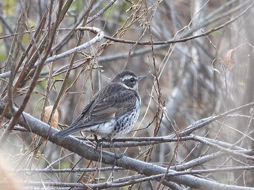 | ムクドリ[1月21日] 電線にもびっしりと止まっています。 | ツグミ[1月21日] ここでは久しぶりです。 | |