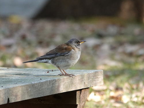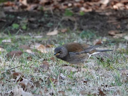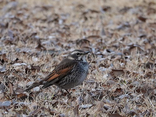 | キジ[1月21日] 食事中です。 | ツグミ[1月21日] グラウンドに1羽だけ出ていました。 | |
