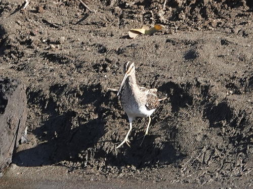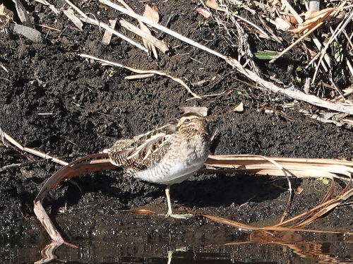 | タシギ[1月14日] 今日も爆睡中です。 | タシギ[1月14日] 少しだけ移動し爆睡してしまいました。 | |