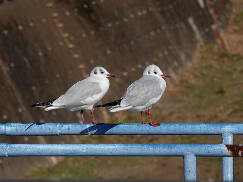 | メジロ[1月24日] 数羽で来て忙しなく動き回り、去って行きました。 | ユリカモメ[1月23日] 今日は多かったです。20羽は居ました。 | |
