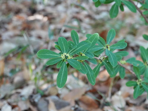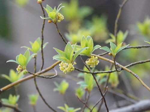 | トラツグミ[3月9日] エサ取りに出てきたようです。 | オニシバリ[3月9日] 目立たない所にあります。 | |