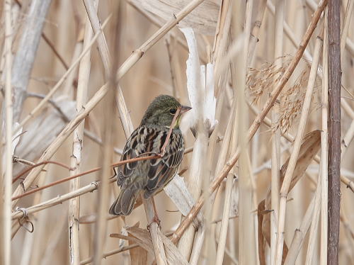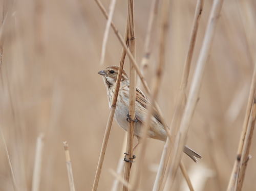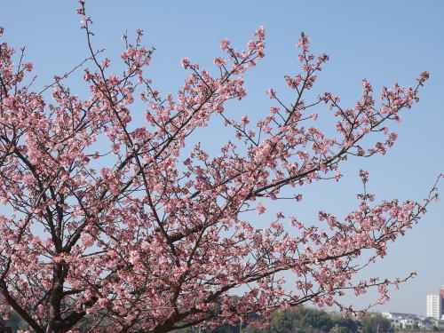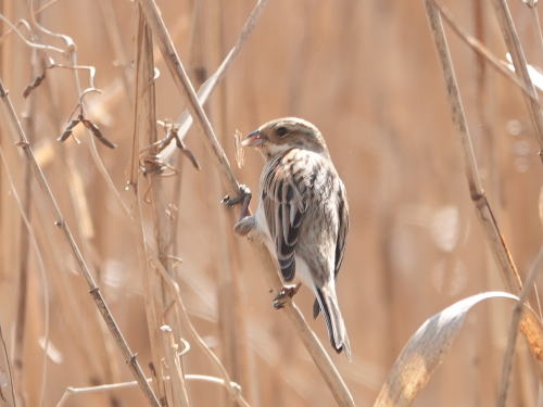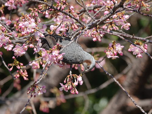 | オオジュリン[3月1日] 多いです、何羽もが群れてヨシの茎を齧っています。 | カワヅザクラ[3月1日] 五分咲きくらいでした。 |