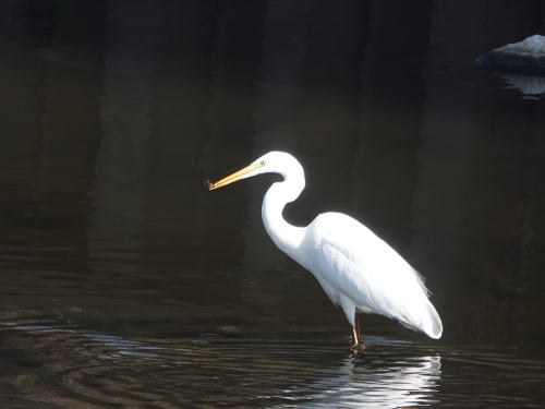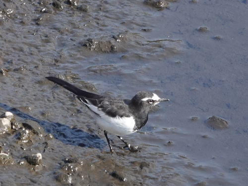 | ダイサギ[3月1日] 小さな魚を獲りました。 | セグロセキレイ[3月1日] せっせと採餌中でした。 | |
