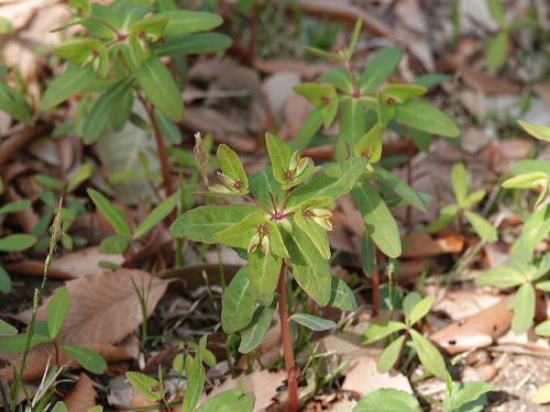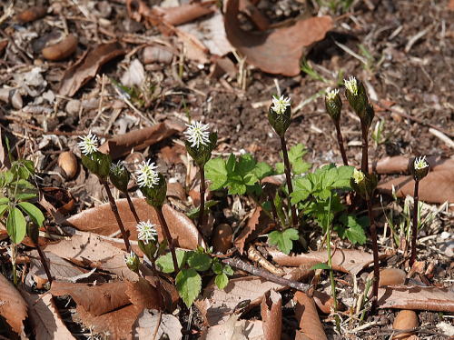 | ナツトウダイ[3月27日] 今年もたくさん咲いています。 | ヒトリシズカ[3月27日] もうこんなに伸びていました。 | |