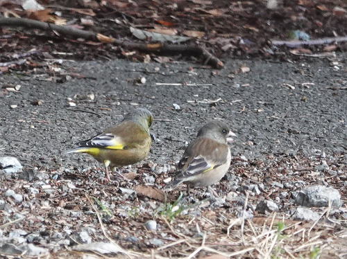 | 大山[3月20日] 地元では雨でしたが、大山は雪だったようです。 | アオジ[3月20日] 1羽だけ通路で採餌中でした。 | |