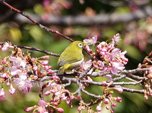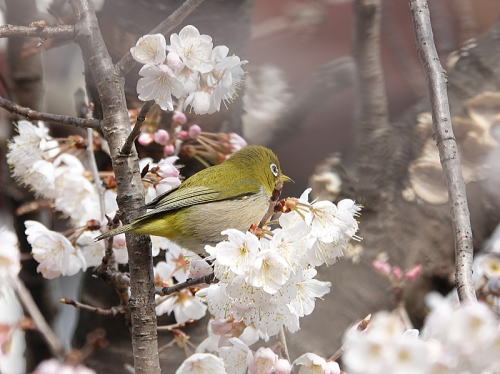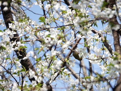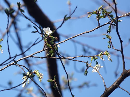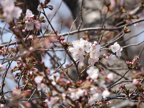| カワラヒワ[3月20日] 4、5羽で採餌中でした。 | オオシマザクラ[3月20日] 咲き始めました。 | |