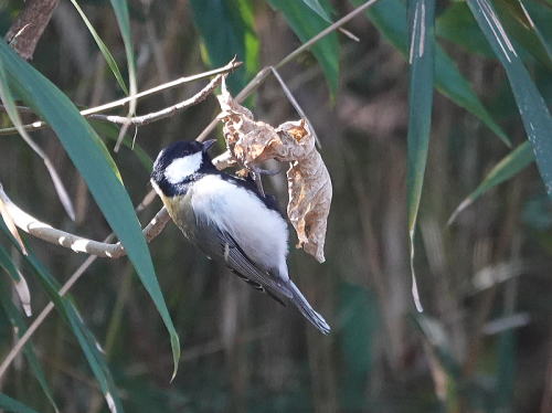 | ツグミ[3月10日] この広場にも1羽しかいませんでした。 | シジュウカラ[3月10日] せっせと突いていました」。 | |