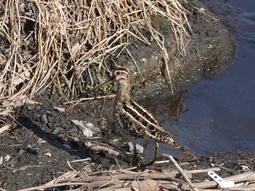 | タシギ[3月1日] 1羽だけでした。 | タシギ[3月1日] 泥地が残っているとやって来てくれます。 | |