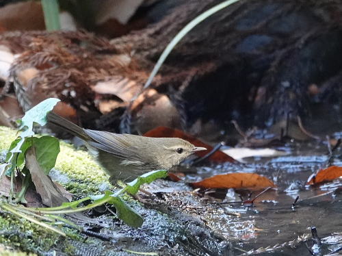 | メジロ[3月2日] ヒヨドリが居なくなれば代わりにメジロがやって来ます。 | ウグイス【3月2日] 水浴びに来ました。 | |