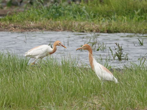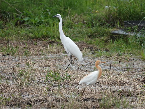 | アマサギ[5月12日] 来ているよと教えていただきました。 | アマサギ、ダイサギ[5月12日] 婚姻色のダイサギと一緒に。 | |
