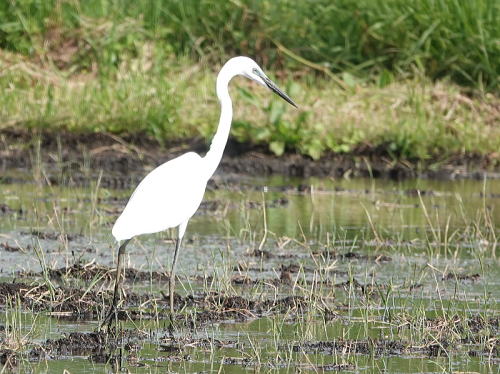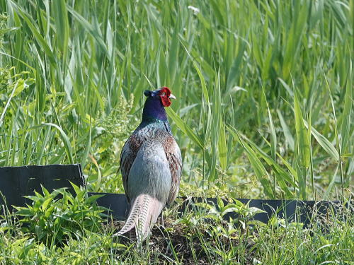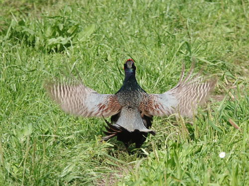 | ダイサギ[5月13日] 水が張られた田んぼで採餌中でした。 | キジ[5月13日] 一度だけ母衣打ちしてくれました。 | |