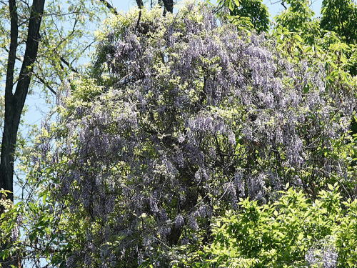 | コゲラ[4月30日] 雛が居るのでしょうか、エサを運んでいる様子です。 | フジ[4月30日] 見事に咲いていました。 |