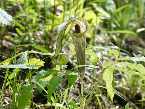 | キビタキ[5月9日] ロープや杭の上が好きなようです。 | マムシグサ[5月3日] あまり近寄りたくない名前です。 | |