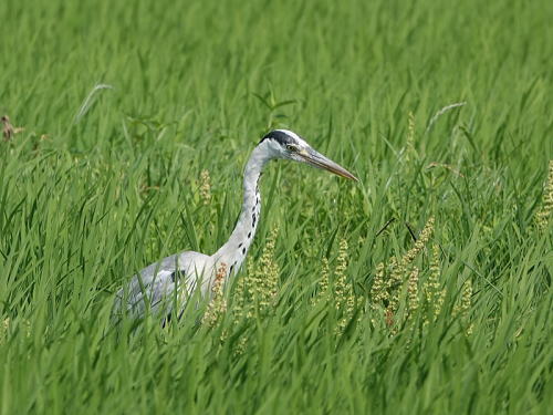 | アオサギ[7月1日] 何かを狙っています。何を獲ったかは見えませんでした。 |