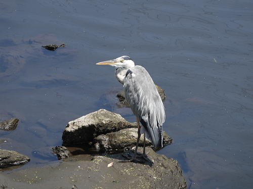 アオサギ[7月22日] 川にはアオサギと飛んで行ったカワセミが2羽だけでした。 |