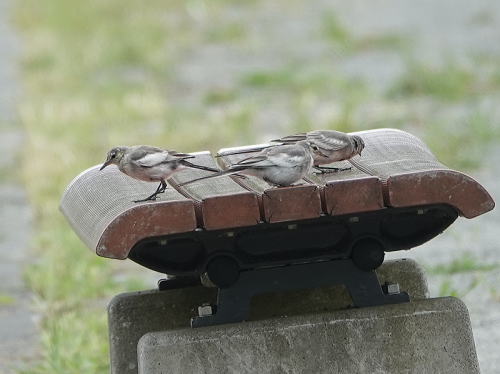 | ハクセキレイ[7月11日] 幼鳥です、椅子の上で遊んでいます。 |