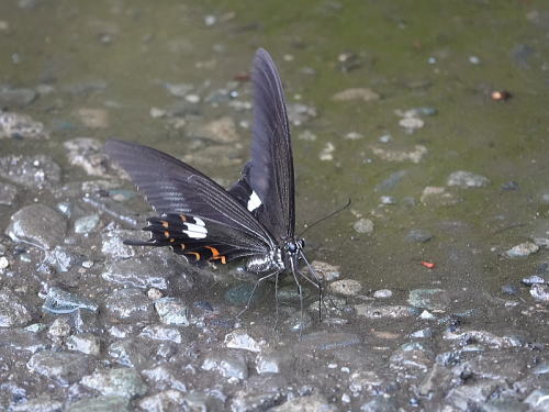 | モンキアゲハ[7月22日] 水溜まりで給水中です。 |