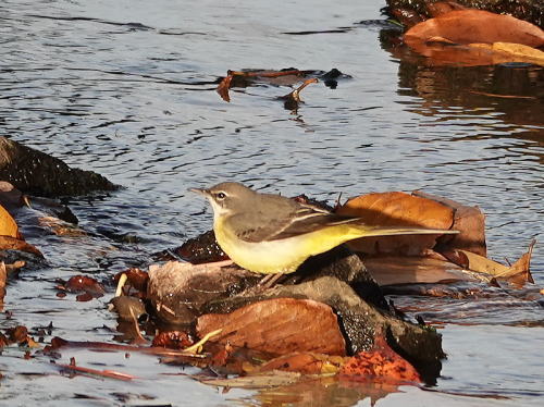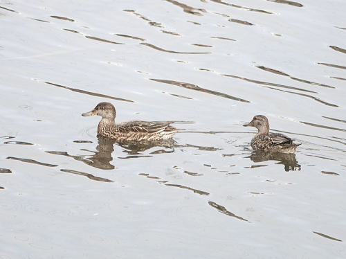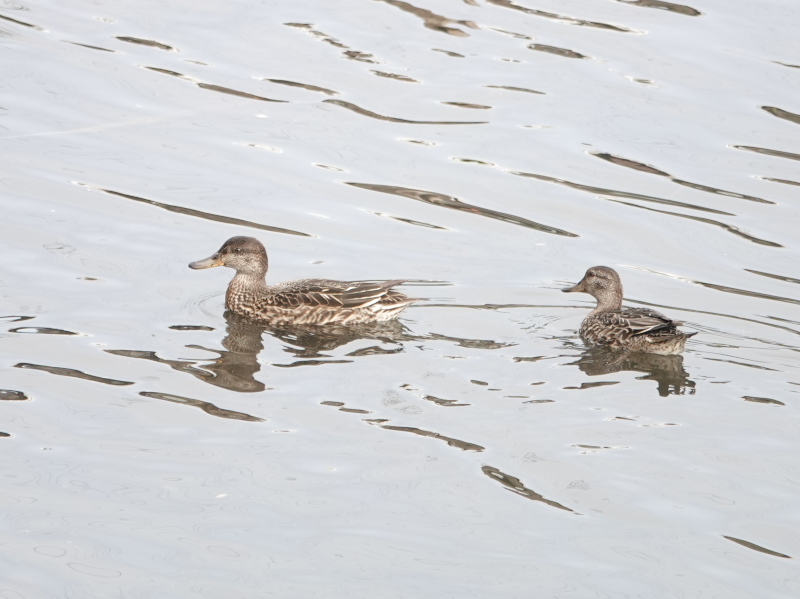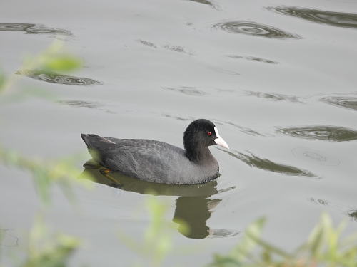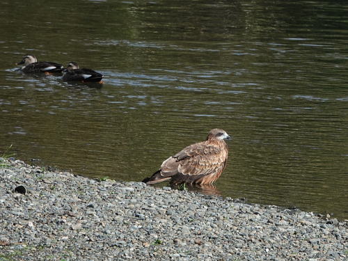 カルガモがトビの前を気にせずに泳いで行きました。 |